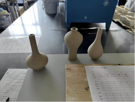 在本次活动中,首先由实验室老师讲解基本工艺,并做示范。随后,在老师的指导下实践团成员亲手制作汝瓷,从灌浆到脱模,实践团成员记录时间,及时进行补浆,细致入微。脱模后待坯体稍干,实践团成员开始进行打磨,准备素烧。在素烧过程中,实践团成员收集了一些陶泥和制作小饰品的工具,使用陶泥制作手工艺品。