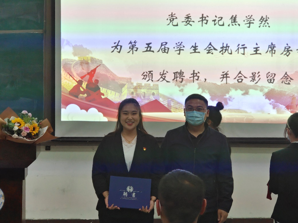 第六届学生会成立大会在庄严的国歌声中拉开帷幕。会前,团总支书记任融致开幕词。她表达了对第五届学生会工作的肯定以及对第六届学生会的支持与鼓励。接着,第五届学生会执行主席房智婷作述职报告,对学生会过去一年的工作进行总结。随后,党委书记焦学然、党委副书记赵振新分别为第五届学生会主席团及部长团颁发聘书并合影留念,杨亚娟、李刚老师分别宣布第六届学生会主席团及部长团成员名单。在两届执行主席交接仪式结束后,第六届学生会执行主席张玉洁同学代表新一届学生会作就职演讲,对学生会未来一年的工作计划进行阐述。最后,党委副书记赵振新致闭幕词。她首先对第五届学生会一年的努力和成绩表示肯定,同时要求第六届学生会要秉承优良作风以更加坚定的信心,更加坚决的勇气,努力实践、锐意进取,把学生会工作做到更好,更加出色。大会在全体师生奏唱太阳集团网tyc9728校歌的热烈氛围中圆满结束。