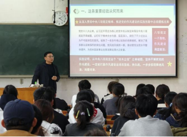 活动伊始,焦学然围绕习近平总书记所提出的重要论述,强调全面从严与自我革命的内在联系,并引出永葆党的先进性、纯洁性的理论创新中提炼出的重要经验,进一步深化同学们对党的自我革命的规律性认知。随后,通过“抓细抓长”“专项整治”“坚持强硬约束”“正风肃纪反腐”四个角度深入讲解,让学生们了解到中国共产党刀刃向内的决心和信心。最后,焦学然强调必须紧紧扭住责任制这个“牛鼻子”,牢记加强作风建设是全党的共同责任,一方面激发了同学们入团入党的热情与信心,另一方面也鼓励同学们提高自省能力,强化纪律观念与规矩意识,自觉锤炼道德品行,将党的优良作风内化为坚定的理想信念与日常的行为准则,为成长成才奠定坚实根基。