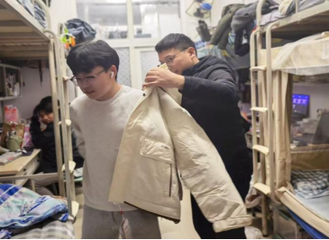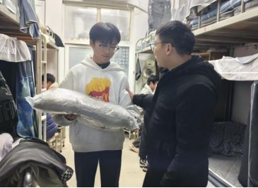 首先,焦学然携各位老师们深入学生宿舍,与同学们亲切交谈,详细询问大家的住宿环境、日常起居、学习状态及冬季保暖情况,并鼓励学子们以热血向未来,勇于突破自我,夯实专业基础,在追逐梦想的道路上永不言弃。随后,焦学然亲手为学子穿上羽绒服,送上来自学校和学院的温暖。走访中,老师们细心叮嘱同学们注意保暖、谨防感冒,满含对学子的牵挂,并勉励大家踔厉奋发,不拘于一时之困,以勤奋之笔,书写无愧于时代的青春华章。