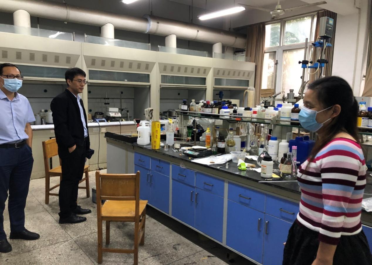 (通讯员:李亚红,审稿:张延兵)为规范和加强学院实验室安全管理工作,充分保障疫情期间学生返校后实验教学和科研正常进行,防止不安全事故发生。9月28日上午,校实验室建设管理中心主任张宏敏、副主任张洪波带领实验室建设管理中心其他工作人员来太阳成集团tyc9728(简称“材化学院”)进行安全督导工作。材化学院党委书记焦学然、副院长汪潇及实验室管理人员进行了迎检工作。