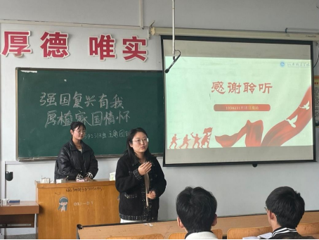 活动伊始,团支书张佳妮以《强国复兴》视频引入此次团课,同学们结合视频内容,联系“强国复兴有我,厚植家国情怀”的活动主题展开积极讨论,并采用“击鼓传花”的形式随机挑选学生阐述自己对“强国有我”的认识。团日活动最后,在场师生共同唱响《少年中国说》,用嘹亮的歌声抒发爱国情感,用昂扬的姿态展现强国信念。随后陈伟老师对本次活动做出点评并提出建议,指出本次团日活动形式较为多样,以游戏充分调动同学们的积极性,充分体现了良好的班级凝聚力,同时希望未来材化学院的团日活动可以在内容和形式上不断创新,发挥实效。郭芮含老师也对本次团日活动进行总结,向同学们发出美好祝愿,期待大家以后可以成为一名有责任感、对祖国和人民负责的新时代青年。