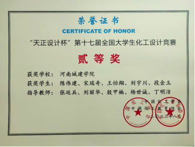 全国大学生化工设计竞赛是国内化工教育领域级别最高、参赛队伍最多、影响力最大的年度大赛,是中国高等教育学会纳入全国普通高校学科竞赛排行榜榜单的A类竞赛。按照大赛要求,我院化学工程与工艺学子经过专业老师的悉心指导,参赛队员间的相互配合和共同努力,高质量地完成了参赛设计作品,经过华中赛区专家对设计方法、图纸、文档等三个专项评审,并经过现场PPT汇报、评委提问等答辩环节,烯精本腈团队取得了全国二等奖的优异成绩。