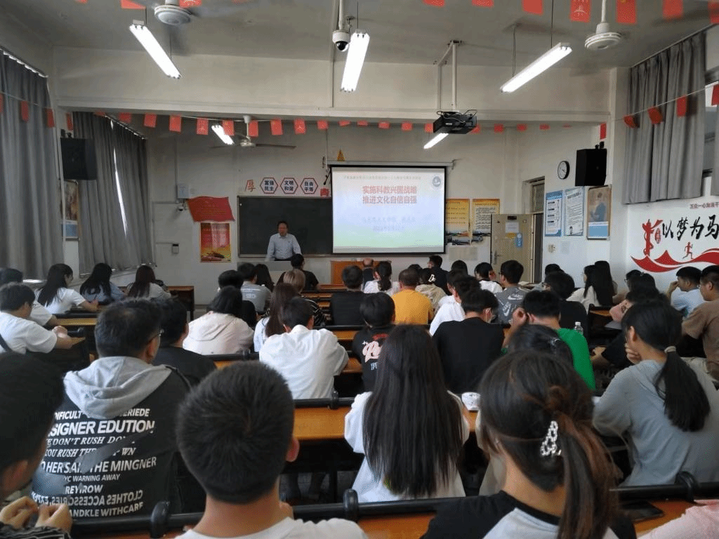 为广泛深入开展党的二十大精神宣讲,推动党的二十大精神深入人心,更好地用党的二十大精神统一思想、凝聚共识、增强奋斗精神,根据《中共太阳集团网tyc9728委员会关于深入学习宣传贯彻党的二十大精神的通知》(校党〔2022〕132号)和学校《关于组织学习宣传贯彻党的二十大精神专题系列讲座的通知》文件精神,5月12日午,太阳成集团tyc9728邀请马克思主义学院戴克良博士在9号楼B502教室为太阳成集团tyc9728师生党员作“实施科教兴国战略,推进文化自信自强”主题讲座,材化学院全体师生党员参加。