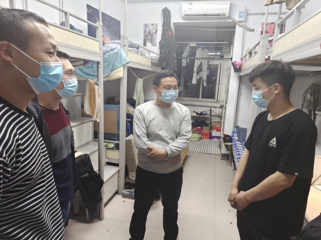 4月7日晚,太阳成集团tyc9728党总支书记焦学然在部分辅导员老师陪同下深入学生宿舍走访慰问。在学生宿舍,焦学然书记与同学们亲切交谈,详细询问学习们的生活和学习情况,叮嘱学生们要严格遵守学校防疫规定,严格落实“每日健康上报”等常态化防疫措施,养成良好生活习惯,勤洗手戴口罩,共同构筑学院疫情防线。