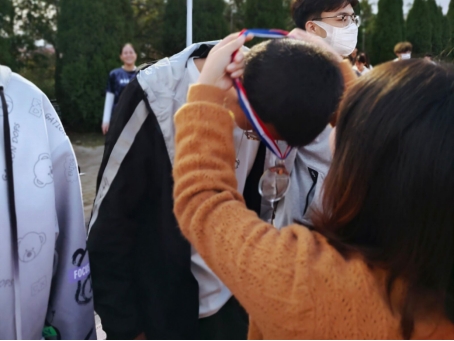 团学负责人杨亚娟老师为运动员颁发奖牌
