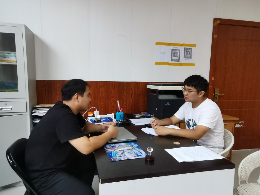 尹坤鹏为我校2017届毕业生,化学工程与工艺专业,毕业后经过自己的不懈努力,在平顶山市创办了海思考研学校,不断打拼,建立了海思考研基地。采访过程中,尹坤鹏学长讲述了自己的创业事迹。他和同事们在工作岗位上的努力与坚守,让同学们肃然起敬、深受启发。当回忆起笑声与汗水交织的大学生活时,他流露出对母校的思念与感激。采访结束,尹坤鹏邀请通讯员参观了海思考研基地,让同学们真正深入的体验公司各项工作运转的情况。
