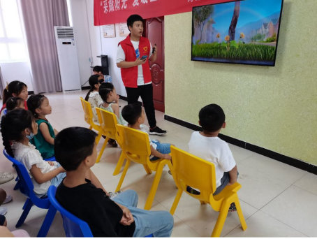 活动中,志愿者带领孩子们一起观看励志短片《杂草的梦想》,借此告诉孩子们无论前路多么坎坷,坚定梦想、拥抱勇气向着目标前进,总会有意想不到的收获。接着,为锻炼孩子的反应能力,培养孩子们对生活的细致观察,志愿者们为孩子们带来了有趣的猜谜语、脑筋急转弯、“你画我猜”小游戏。孩子们发挥想象力与聪明才智,又快又准地说出正确答案。活动现场孩子们笑声不断,纷纷敞开心扉与志愿者建立了真挚友情。