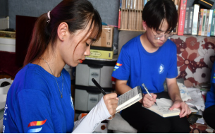 志愿者认真做采访记录