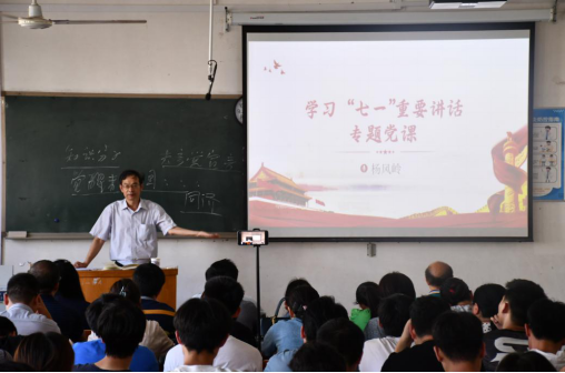 (通讯员:任融)7月8日下午,副校长杨风岭在9号教学楼B座508为材化学院师生上习近平总书记“七一”重要讲话精神专题党课,材化学院师生60余人参加了党课学习。