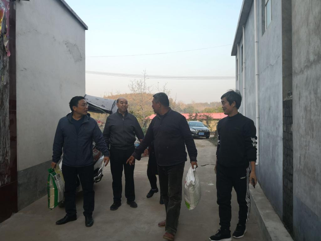 11月9日下午,材化学院党总支书记焦学然、院长赵海鹏到鲁山县搬走岭村帮扶对象黄龙家进行走访慰问。搬走岭村第一书记胡建业陪同走访。