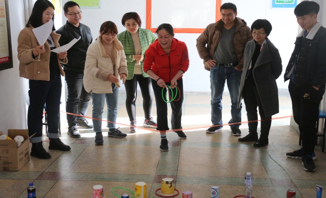 本次趣味运动会共设个人项目踢毽子、投飞镖、对墙打乒乓球、套圈比赛,团队比赛项目有集体跳绳、抛绣球、齐心协力背夹球.本着“安全与友谊第一,比赛与名次第二”的良好比赛风格,教师们积极参与,奋勇争先。比赛现场异常火爆,精彩绝伦。大家脸上洋溢着开心和快乐,此次活动取得圆满成功,既丰富了老师们的业余生活,又达到了强身健体的目的。最重要的是增进了老师们间的感情,培养了大家们的团队合作精神,也营造了欢乐的节日氛围。