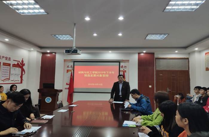 答辩会以党政办主任薛明三宣布答辩注意事项,他对在场的预选发展对象做出期望和要求。答辩开始后,答辩人演讲满怀激情、精神饱满,他们充分的表达了自己向党组织的靠拢的思想和具体事迹,并对自己今后的行为做出了保证。他们说:无论自己能否成为发展对象,都将以党员的标准严格要求自己,时刻向党组织靠拢,争取早日为社会主义建设奉献自己的力量。