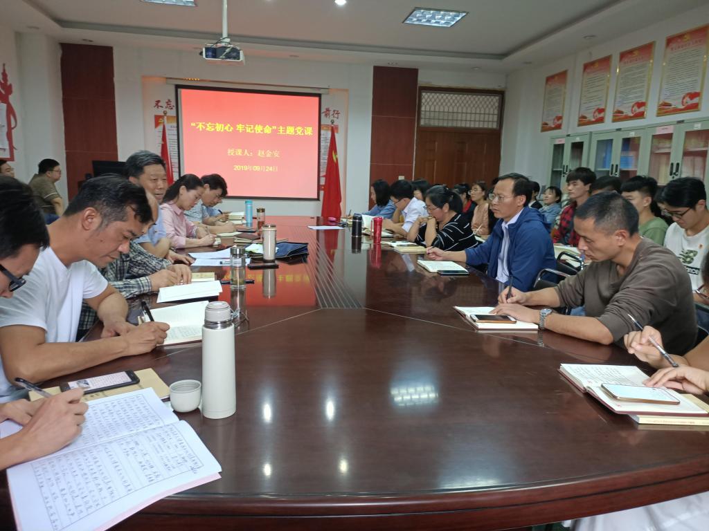 赵金安副校长从三个方面来阐述了什么是共产党员的初心,党员如何践行使命,从中国共产党的发展历程,阐述了只有坚守初心,牢记使命才能路线不偏移、信念不动摇,只有坚守初心,牢记使命才能赢得人民的尊重、迸发强大力量、只有坚守初心,牢记使命才能承担起历史赋予的重任。
