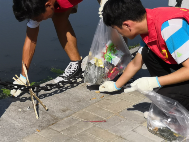 6日上午,志愿者们分别在焦店立交桥四周进行对垃圾的捡拾与整理,用热情感染着周围居民。在捡拾垃圾的过程中,志愿者通过自身经历清楚地知道了目前存在的垃圾问题,在活动过程中深切的意识到了垃圾分类的必要性与紧迫性,虽然治理已经得很大改善,但仍有水资源问题存在。为了解更好的保护水资源,“河小清”社会实践服务队回校之后,召开会议,根据志愿者在活动中发现的问题进行讨论并制作“保护母亲河”倡议书。6日下午,志愿者们再次来到焦店镇,在了解湛河历年状况的同时像居民们发起倡议“爱护环境,珍惜一草一木,让花草树木依湛河而生”。