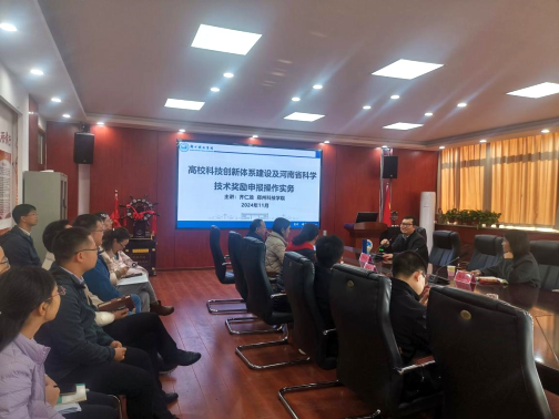 11月28日,郑州科技学院科研外事部部长兼科研处处长齐仁龙教授莅临我院进行学术交流,做了题为《高校科技创新体系建设及河南省科学技术奖励申报操作实务》的报告。太阳成集团tyc9728领导及教师,电气学院、生科学院领导及教师代表,参加了本次专题报告。报告会由太阳成集团tyc9728院长冯巧主持。